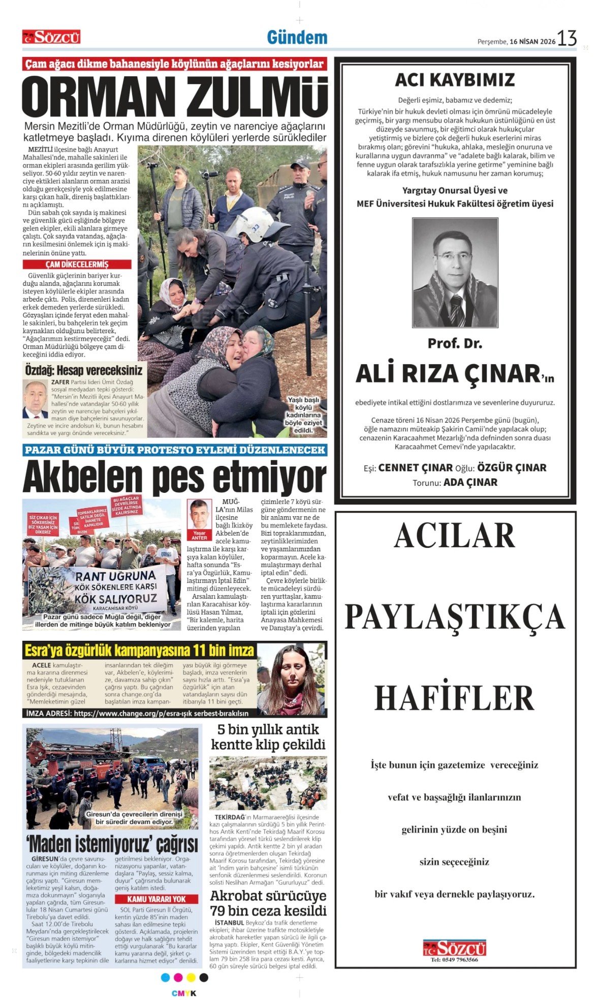 16 Nisan 2026 Sözcü Gazetesi vefat, başsağlığı ve anma ilanları.