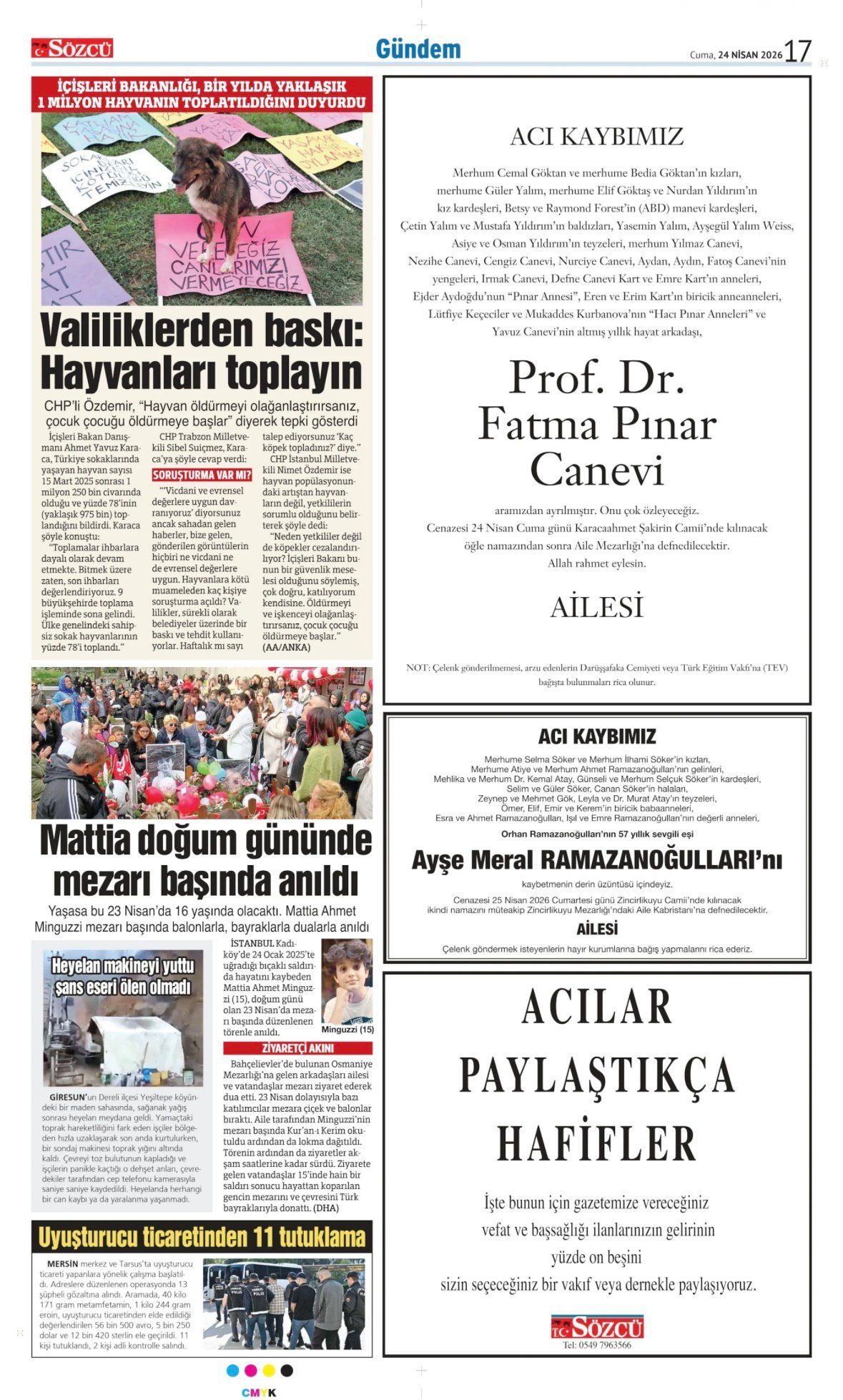 Sözcü Vefat İlanları – 24 Nisan 2026