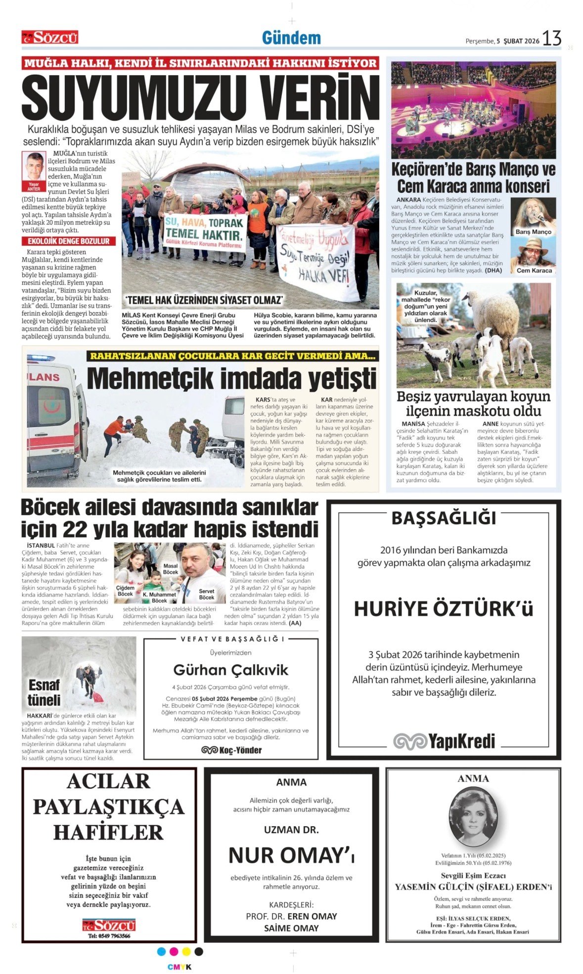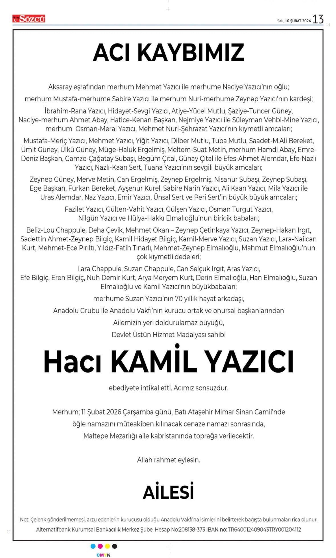 Sözcü Bugünkü Vefat İlan- Başsağlığı İlanı- Anma İlanları ve Arşiv Sayfalar. 14.2.2026