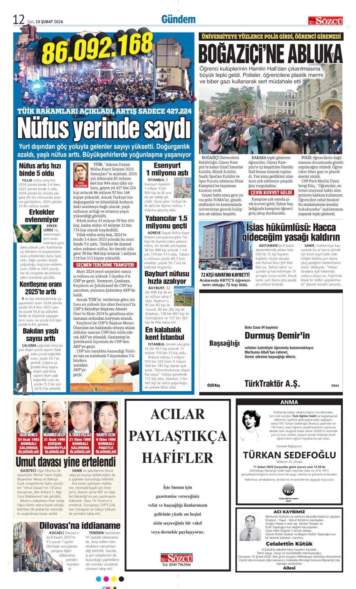 Sözcü Bugünkü Vefat İlan- Başsağlığı İlanı- Anma İlanları ve Arşiv Sayfalar. 10.2.2026