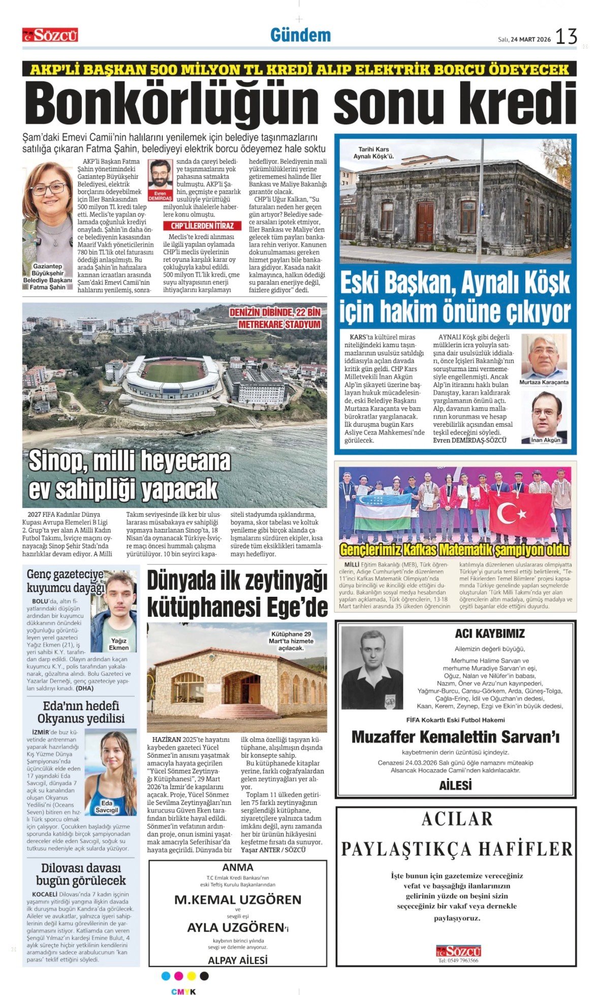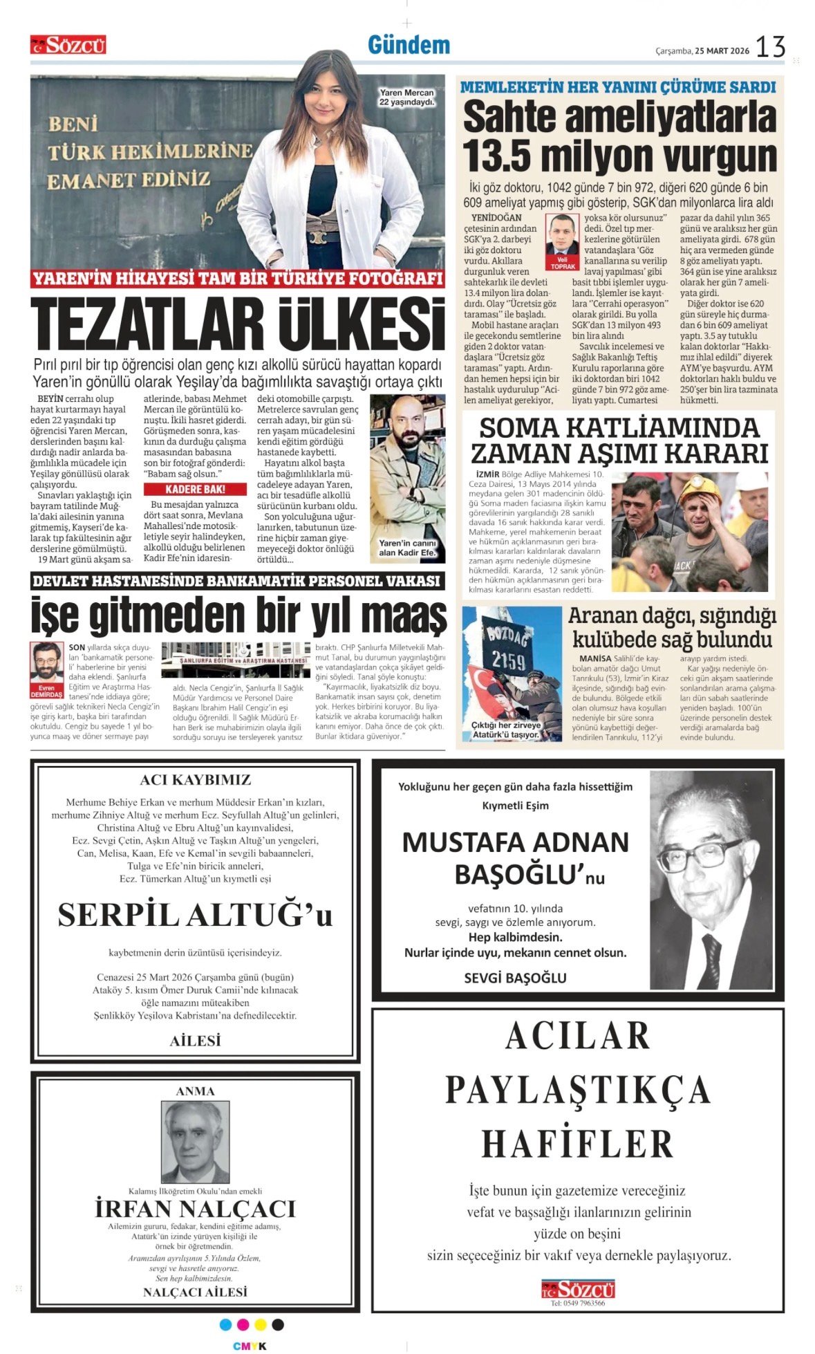 25 Mart 2026 Sözcü Gazetesi vefat, başsağlığı ve anma ilanları. İlan vermek için 0533