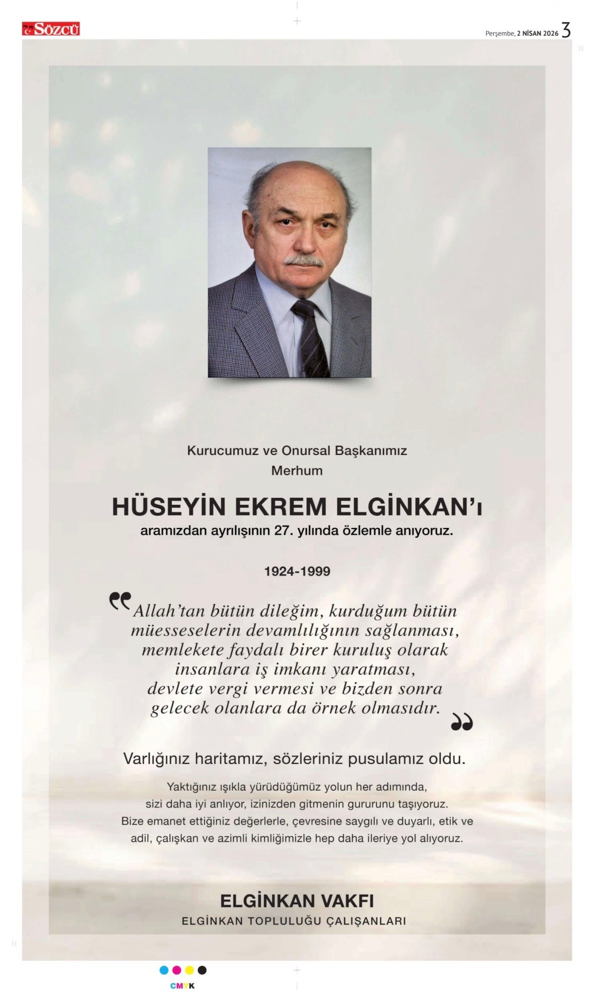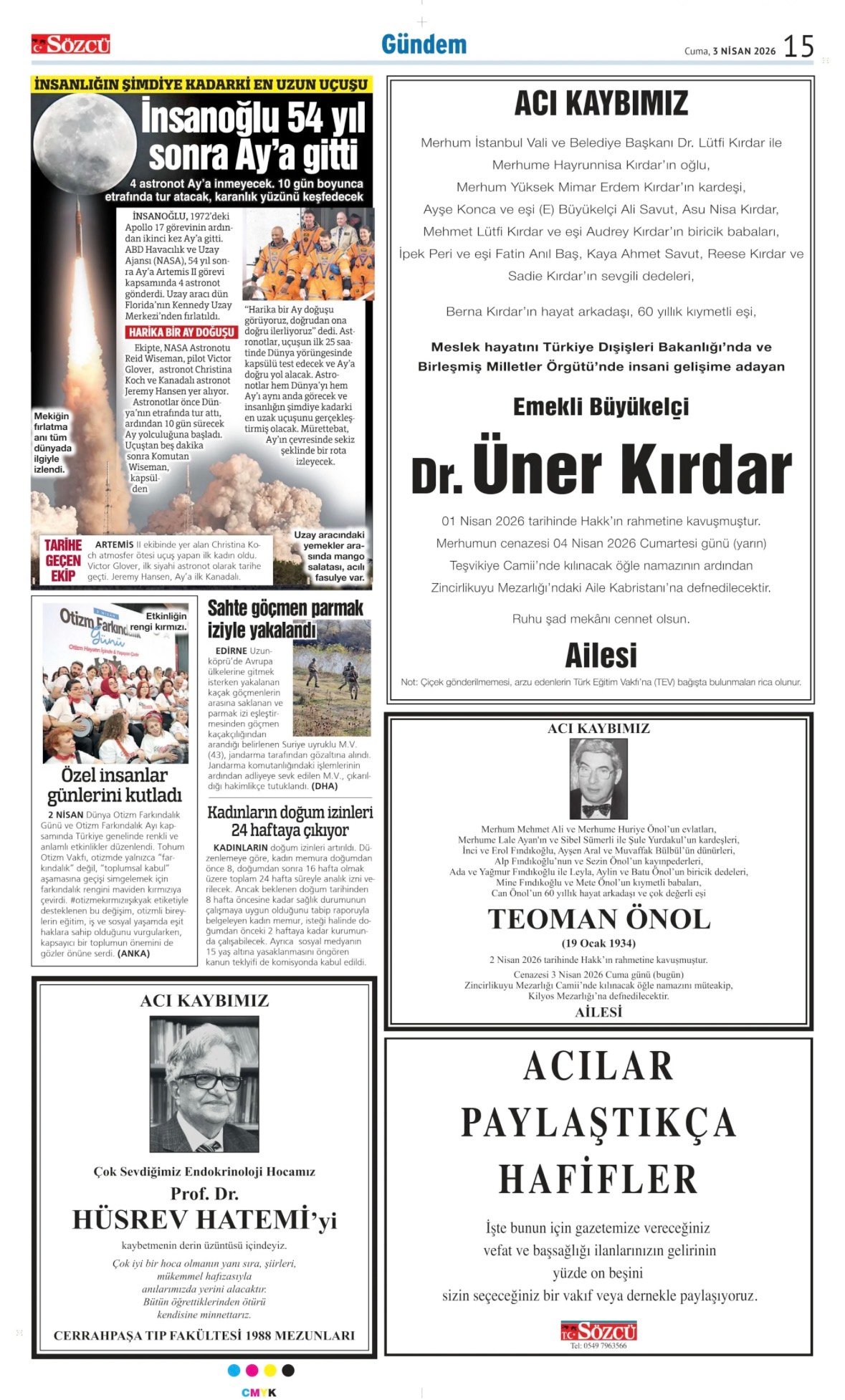 3 Nisan 2026 Sözcü Gazetesi vefat, başsağlığı ve anma ilanları. İlan vermek için