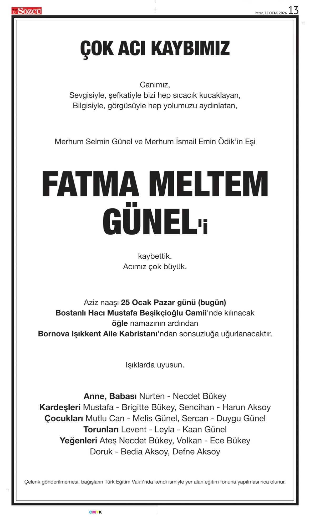 SÖZCÜ BUGÜNKÜ ÖLÜM İLANLARI;