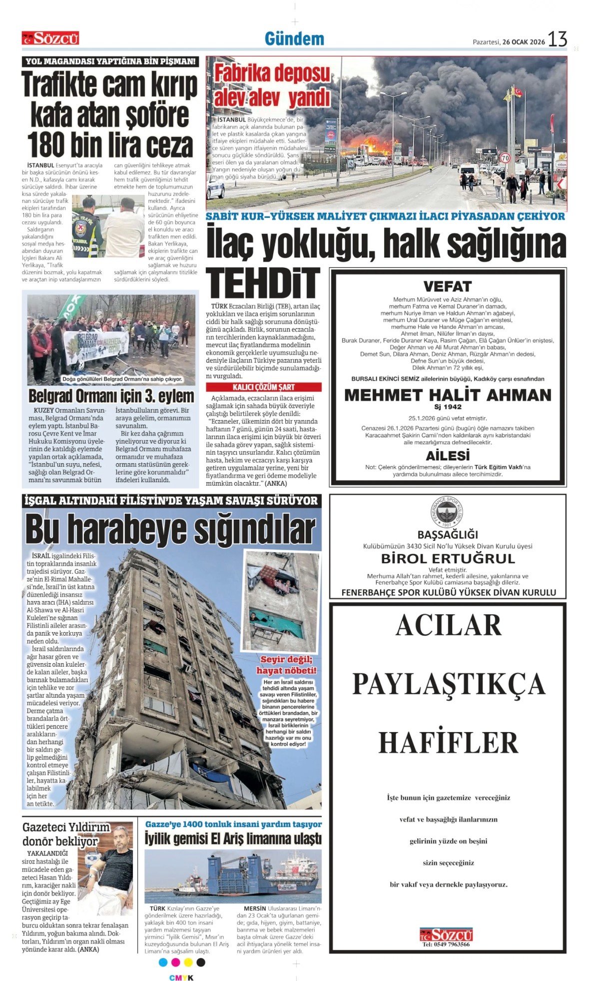 Sözcü Bugünkü Vefat (Ölüm) – Başsağlığı – Anma – Teşekkür – Mevlit İlanları-26.1.2026