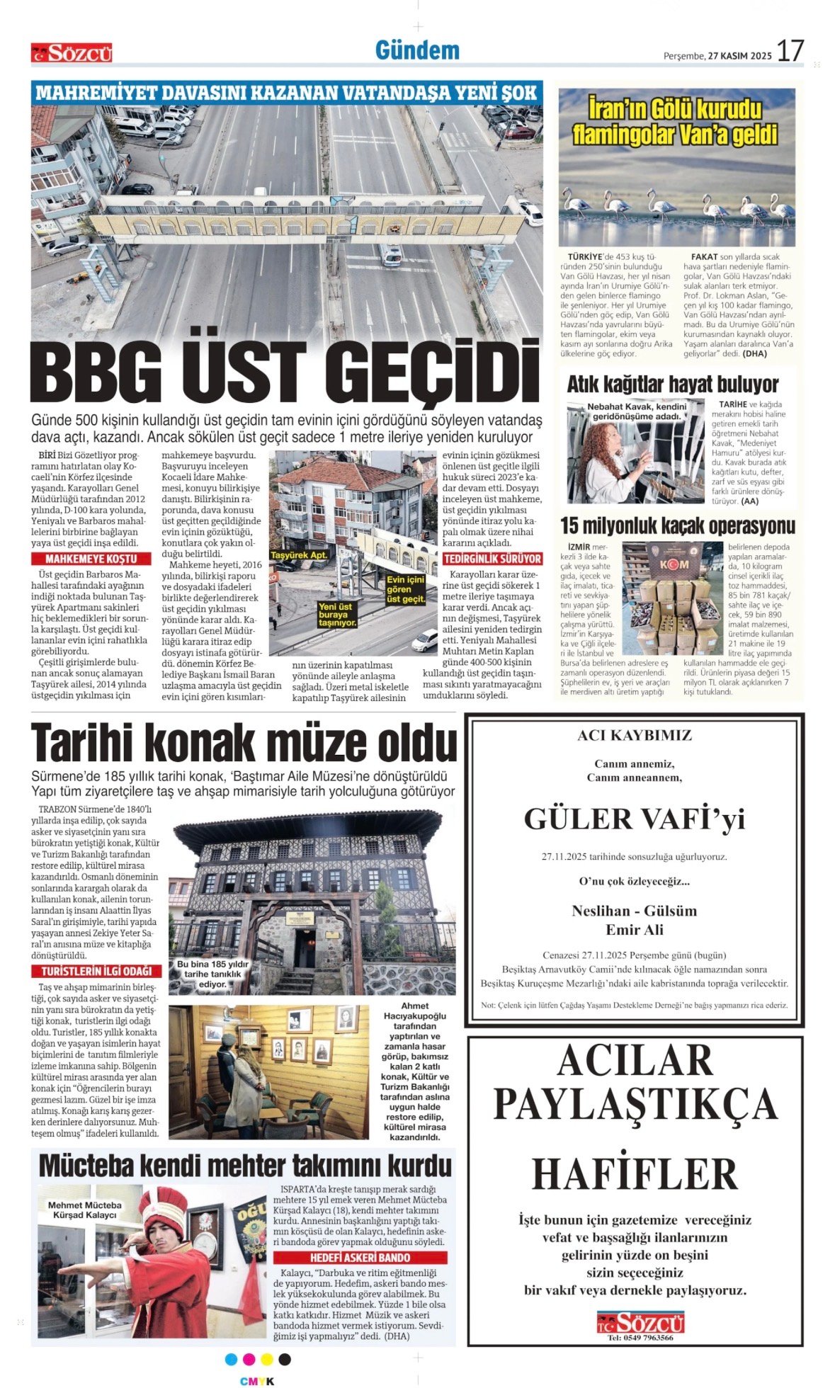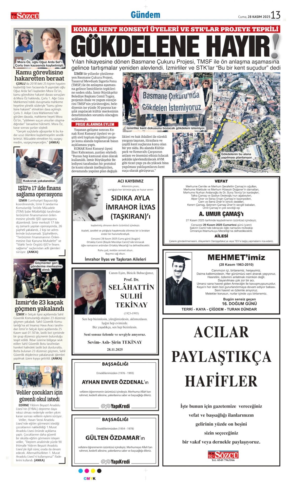 Sözcü Bugünkü Vefat İlan- Başsağlığı İlanı- Anma İlanları ve Arşiv Sayfalar. 27.11.2025