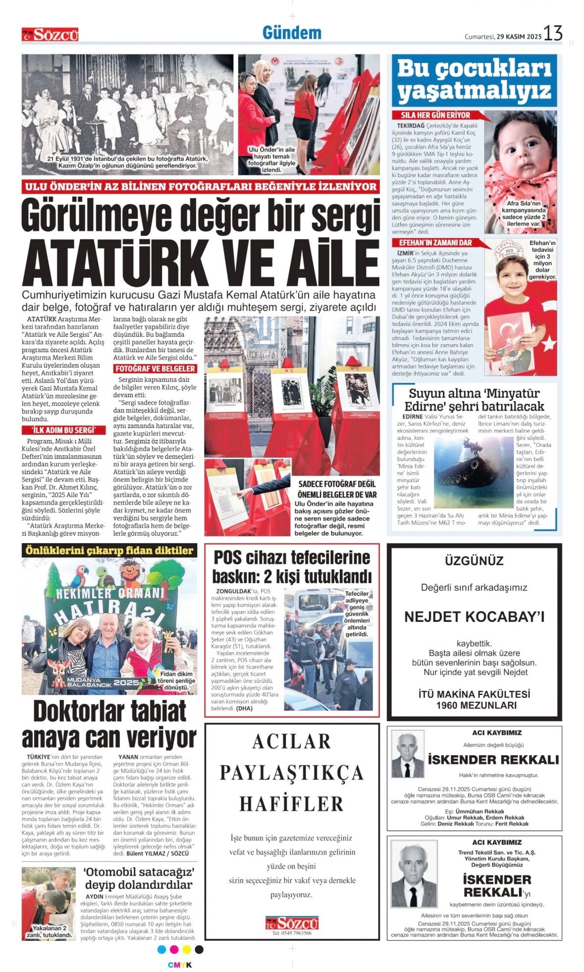 Sözcü Bugünkü Vefat İlan- Başsağlığı İlanı- Anma İlanları ve Arşiv Sayfalar. 29.11.2025