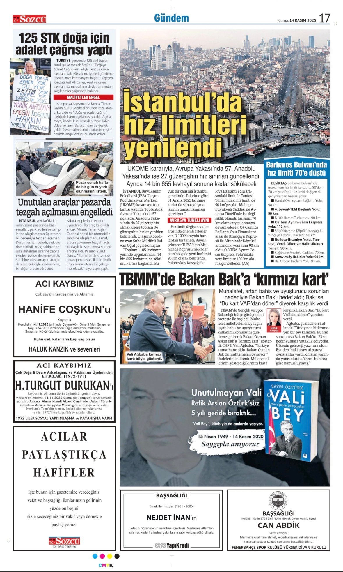 Sözcü Bugünkü Vefat İlan- Başsağlığı İlanı- Anma İlanları ve Arşiv Sayfalar. 15.11.2025