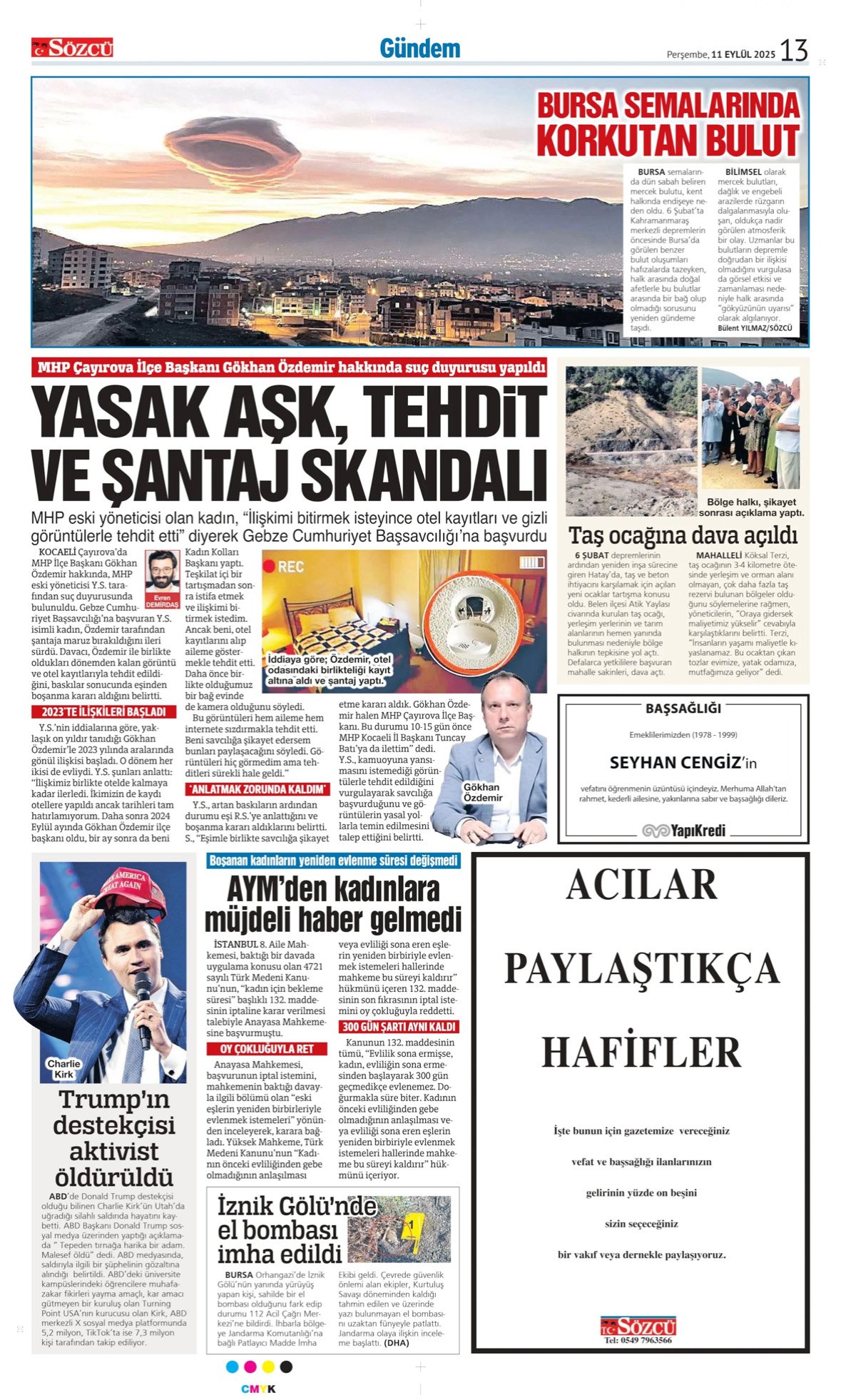 Sözcü Bugünkü Vefat İlanlar 11.9.2025;