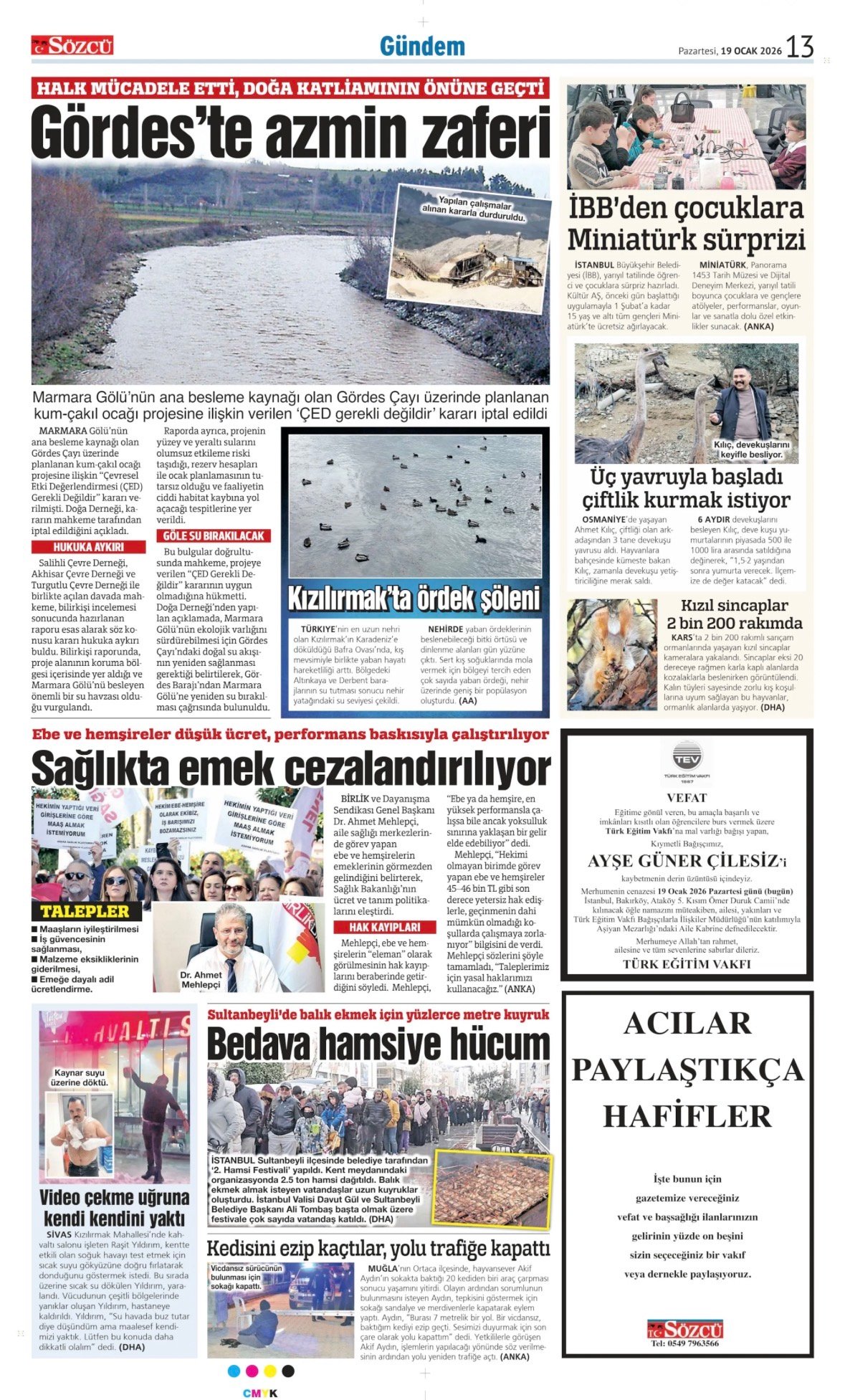 Sözcü Bugünkü Vefat İlan- Başsağlığı İlanı- Anma İlanları ve Arşiv Sayfalar. 19.1.2026