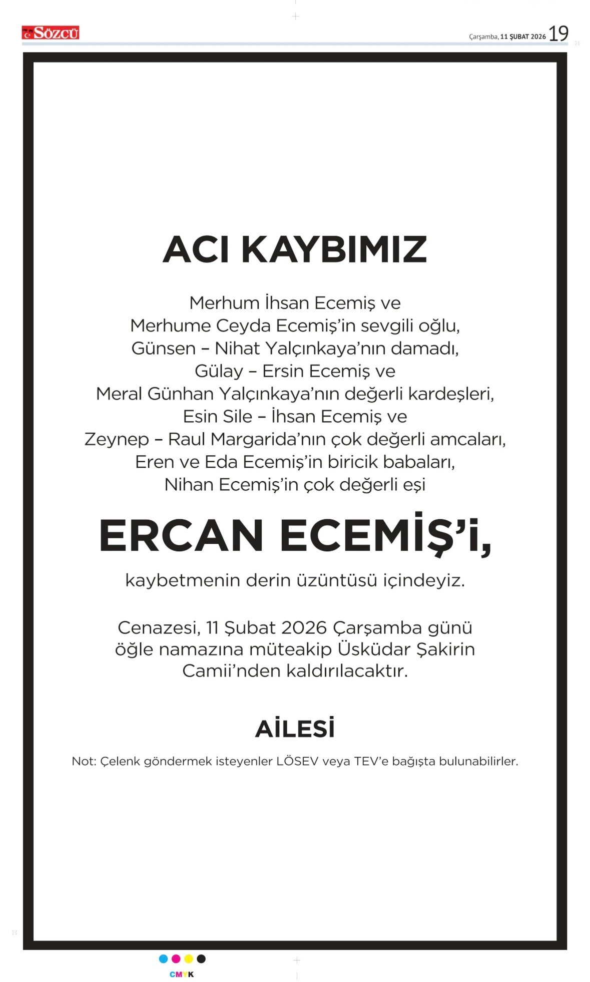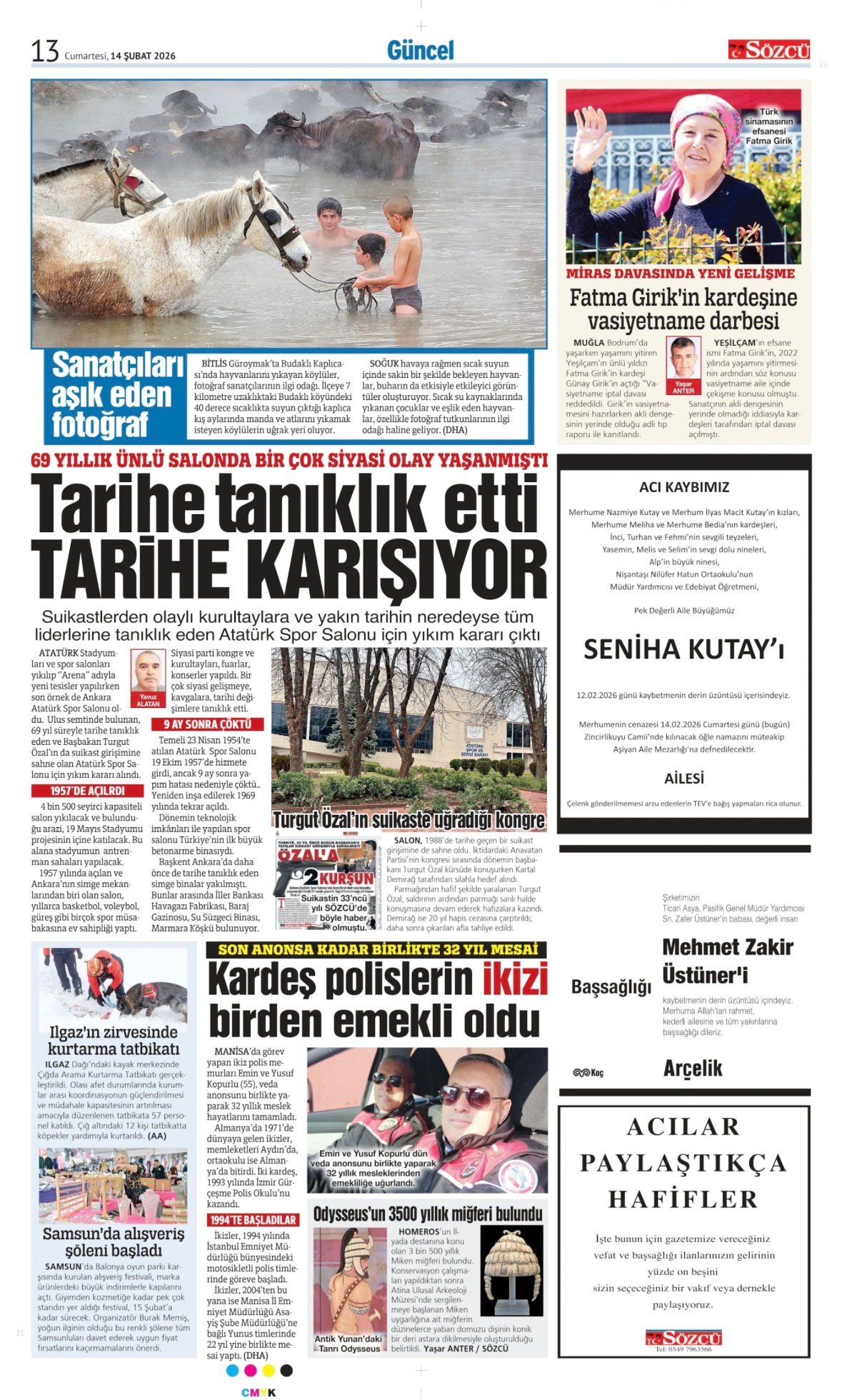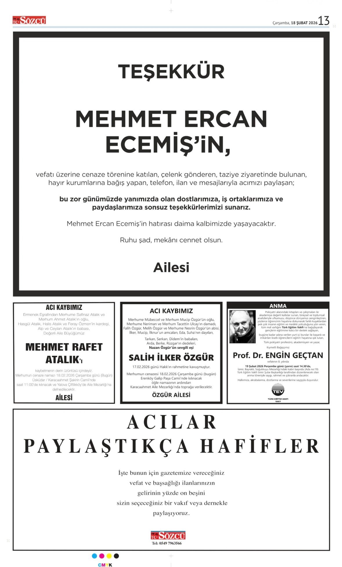 Sözcü Bugünkü Vefat İlan- Başsağlığı İlanı- Anma İlanları ve Arşiv Sayfalar. 14.2.2026