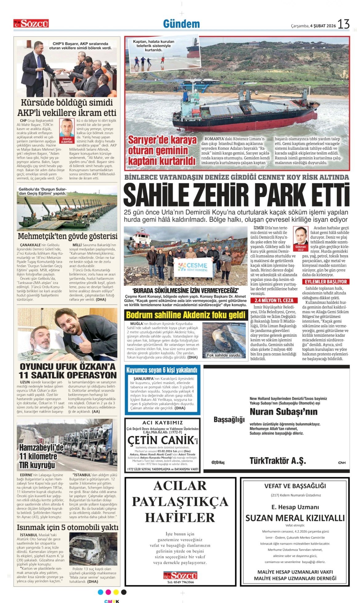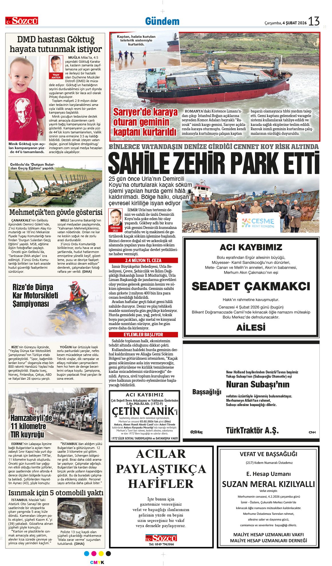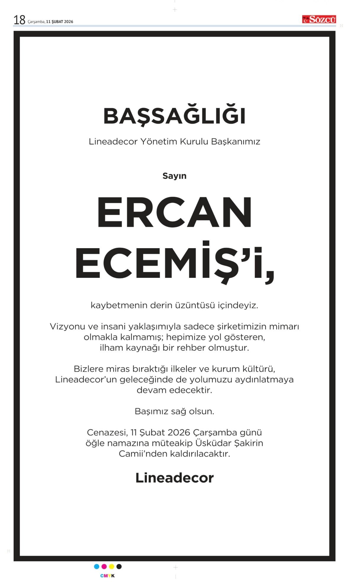 Sözcü Bugünkü Vefat İlan- Başsağlığı İlanı- Anma İlanları ve Arşiv Sayfalar. 14.2.2026