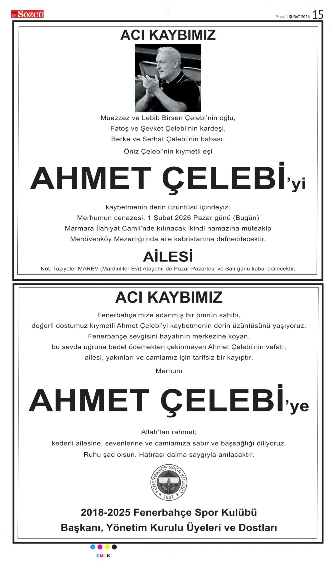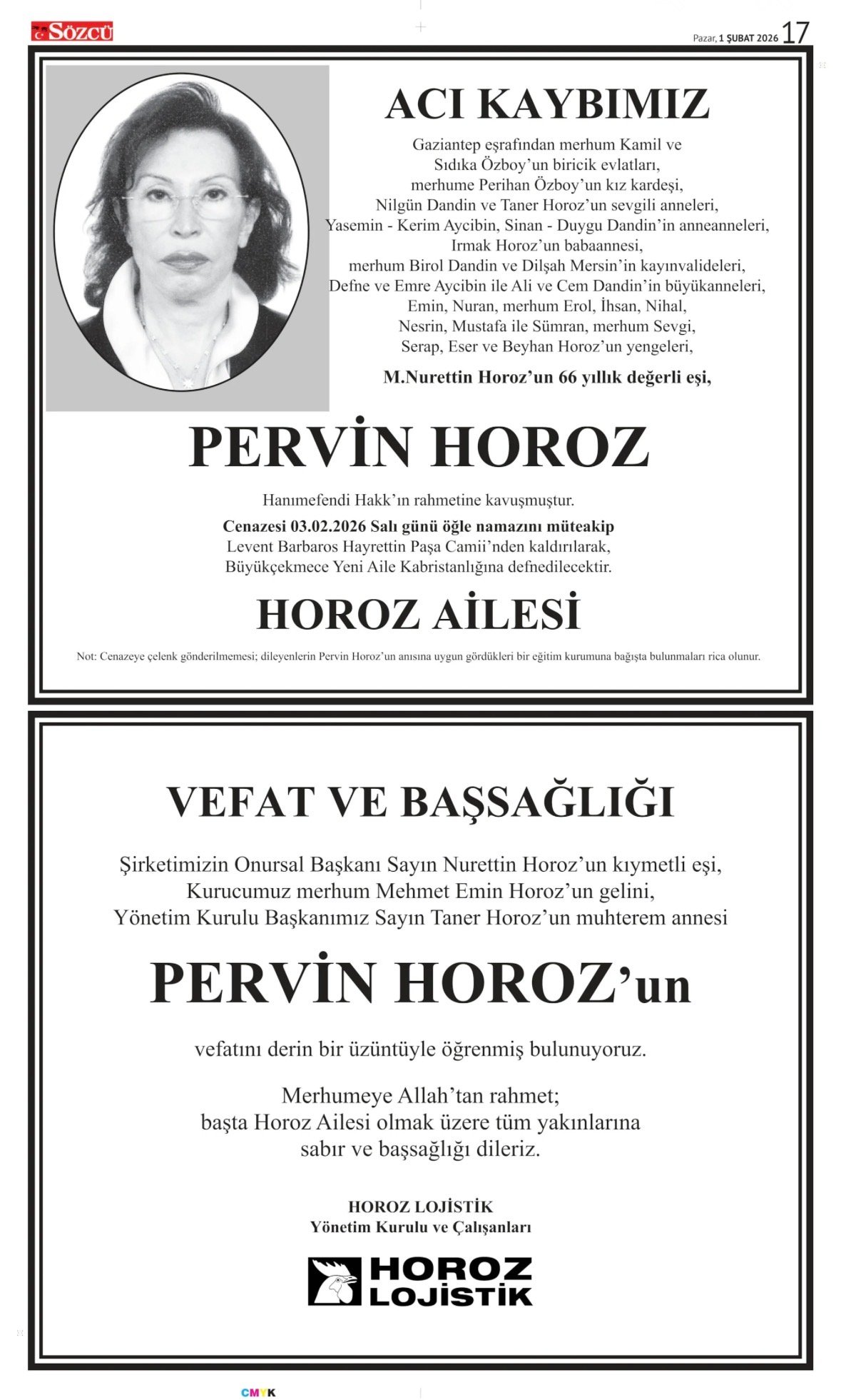 Sözcü Bugünkü Vefat İlan- Başsağlığı İlanı- Anma İlanları ve Arşiv Sayfalar. 3.2.2026
