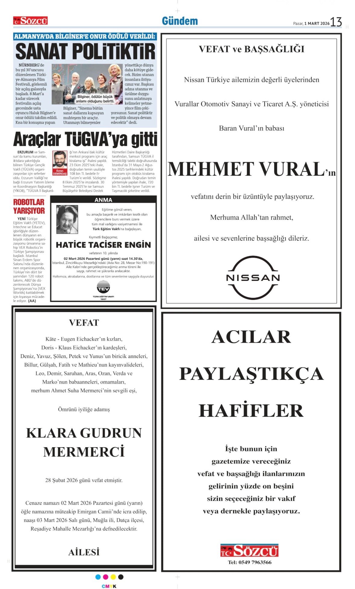 Sözcü Bugünkü Vefat İlan- Başsağlığı İlanı- Anma İlanları ve Arşiv Sayfalar. 3.2.2026